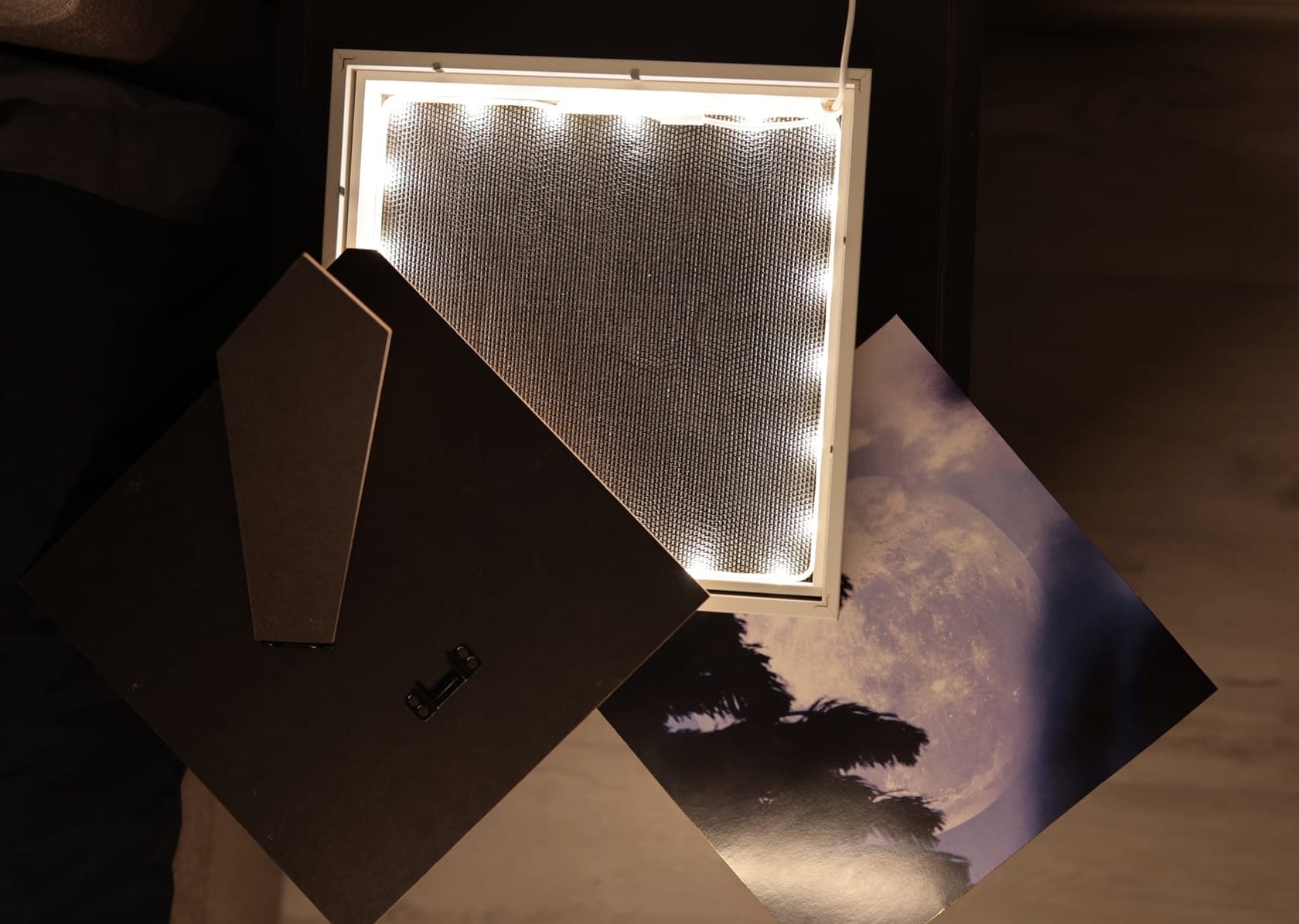 Start by disassembling the Sannahed Photo Frame. This photo frame by Ikea has a unique feature, it allows space for a deep frame effect, meaning, you can place the photo in front of the frame, close together with the transparent shield or further back, creating space between the shield and the photograph. This space is exactly what we're going to use to place the LED light.