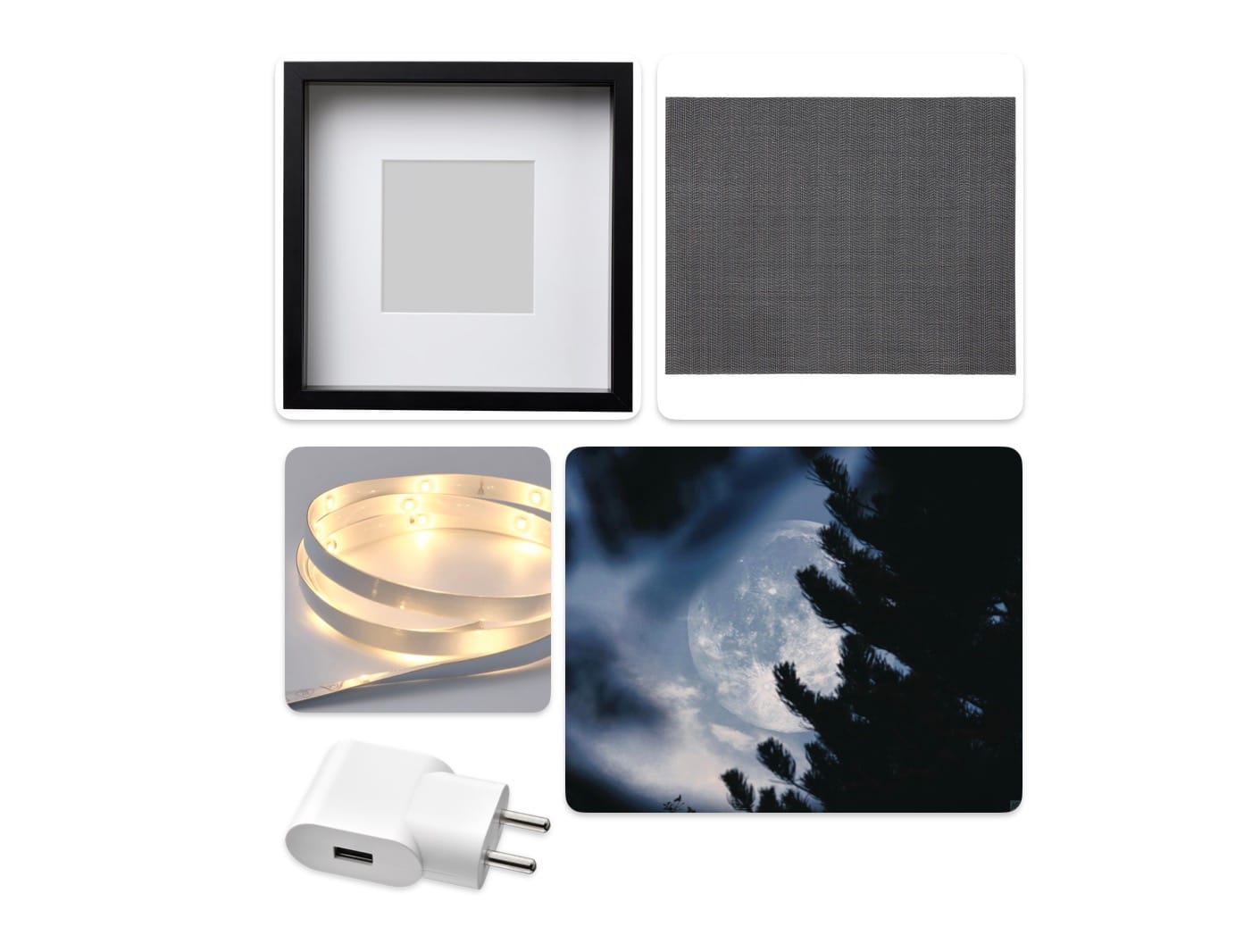 Let your creativity take the charge and build a unique dust-proof bedside photo frame table lamp - easily accessible from the bed and customisable according to mood, season or situation.