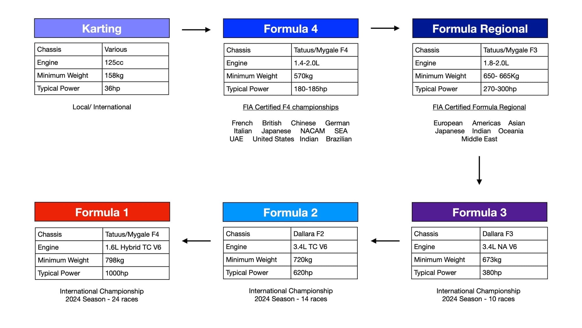 Throughout their junior careers drivers compete in a series of championships that help them rise through the ranks and gain super license points(in F3 and F2), that are required to enter F1.